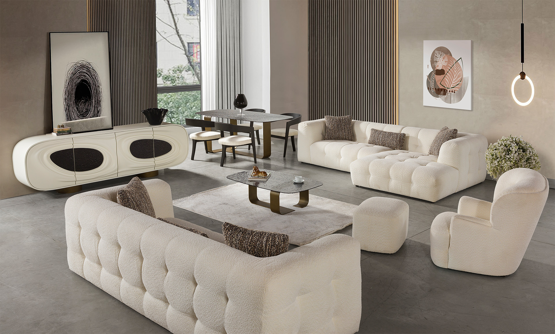 Yalnızca estetik değil; uzun ömürlü kullanım, yüksek konfor ve kusursuz işçilik anlayışıyla hayat bulan mobilyaları ifade eder. Üretimden detaylara kadar her aşamada kaliteyi merkeze alan yaklaşımımız, yaşam alanlarınıza değer katan güçlü ve zamansız tasarımlar sunar.