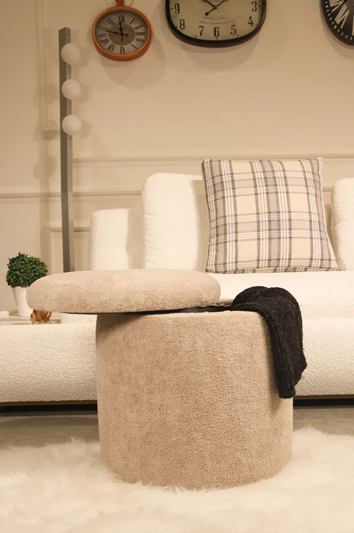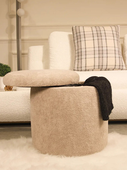 Kapaklı Puf, fonksiyonel tasarımı ve sade formuyla yaşam alanlarına pratik bir kullanım sunar. Oturum alanı olarak konfor sağlarken, kapaklı yapısı sayesinde ekstra saklama alanı oluşturarak mekânda düzeni destekler. Zamansız tasarım dili ve dengeli oranlarıyla farklı oturma gruplarıyla uyum içinde kullanılarak hem estetik hem de işlevsel bir tamamlayıcı parça olarak öne çıkar.