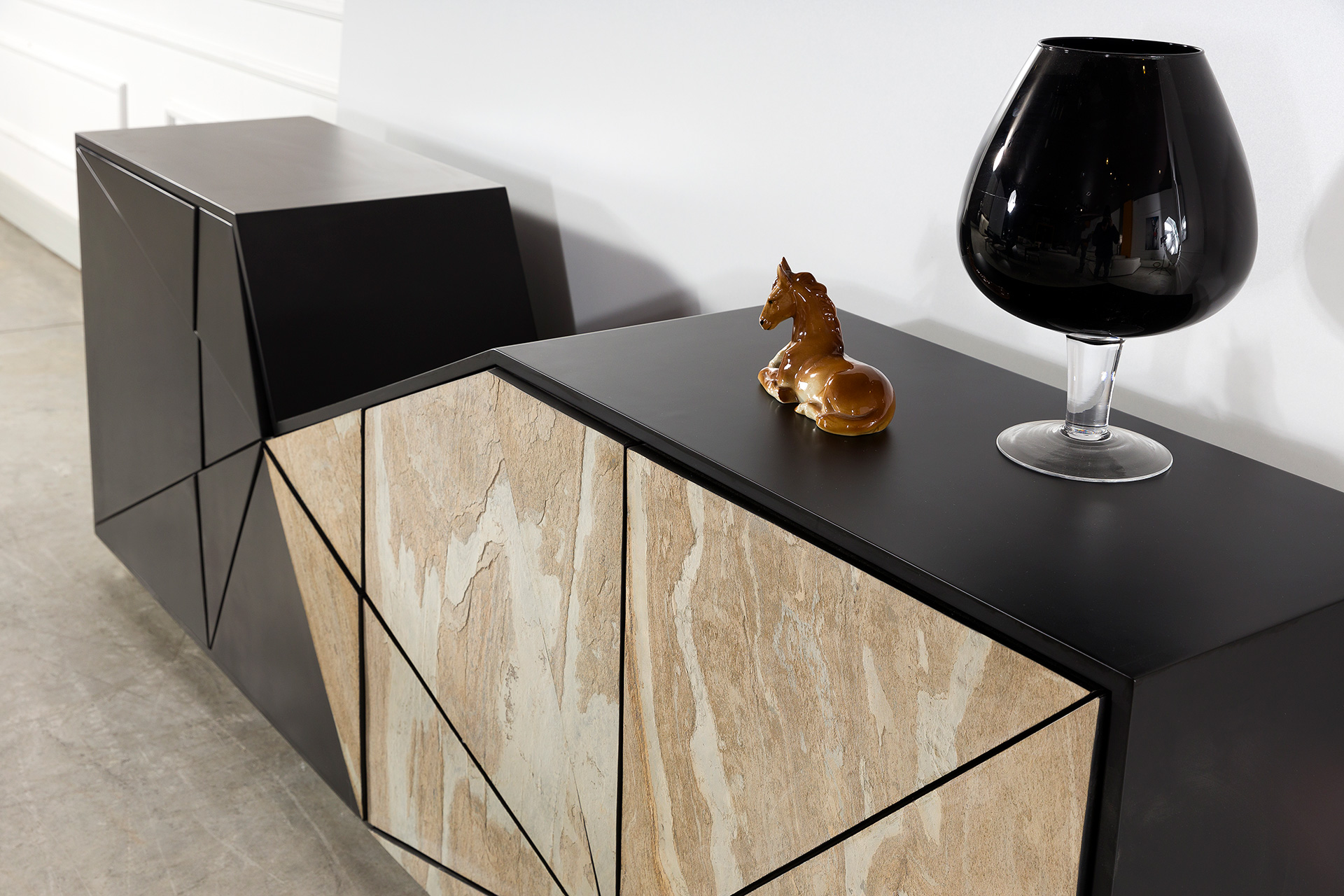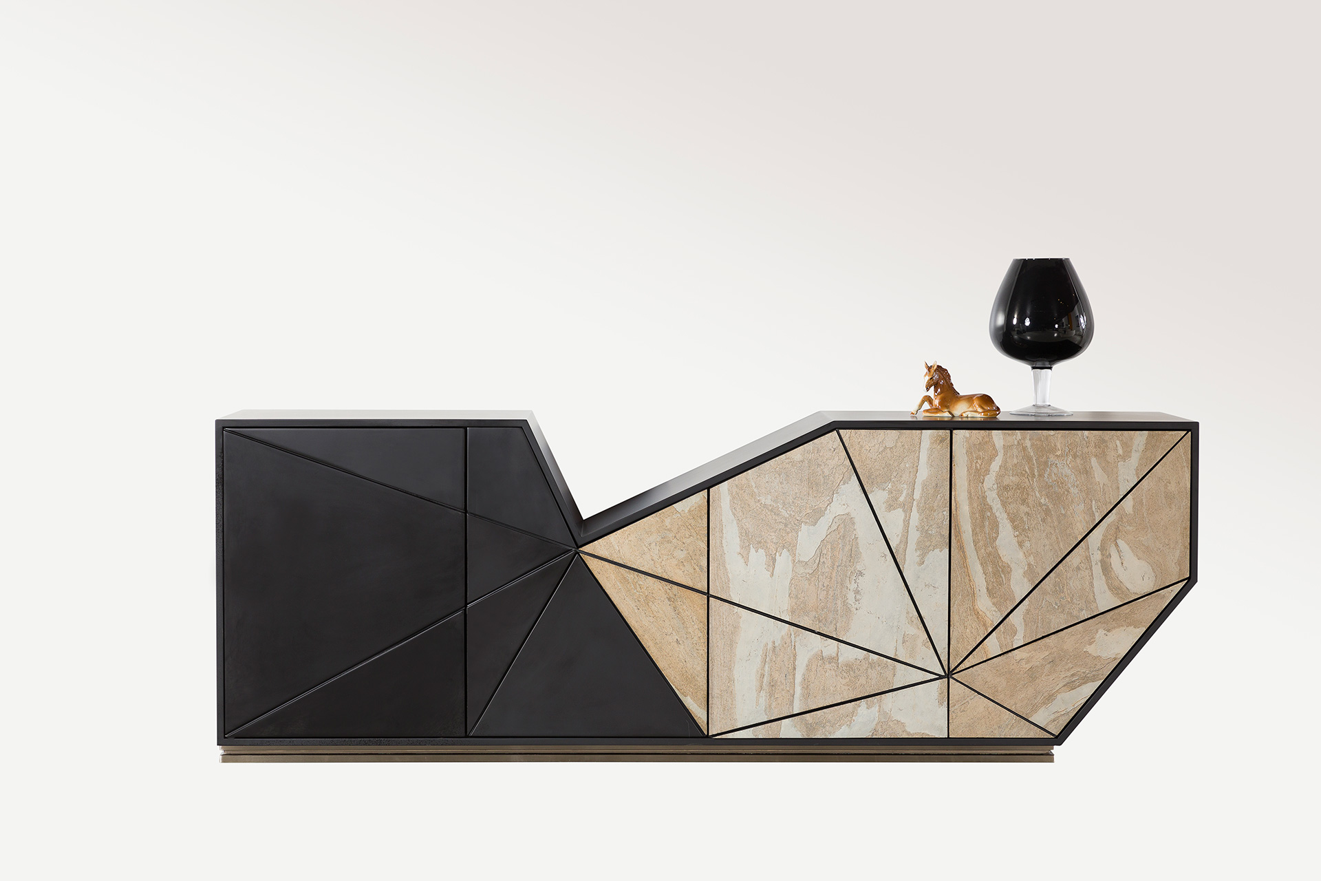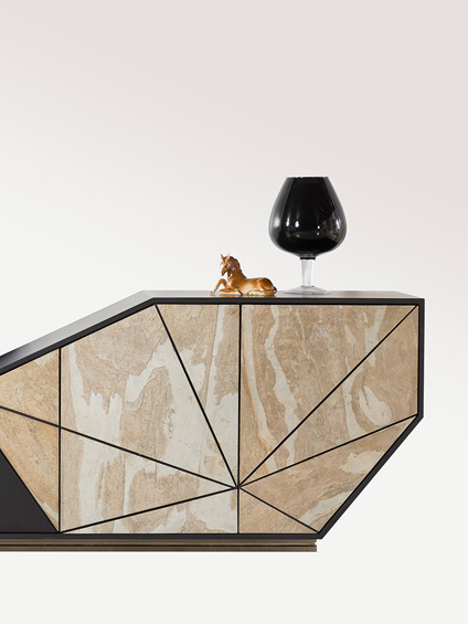 MDF üzeri lake boyalı gövdesiyle modern ve pürüzsüz bir yüzey sunan ürün, CNC işlemeli taş görünümlü kapak detaylarıyla estetik ve sofistike bir tasarım anlayışını yansıtır. Zarif işçilik ve kaliteli malzeme yapısı sayesinde yaşam alanlarına güçlü ve seçkin bir karakter kazandırır.