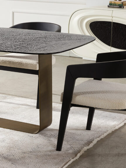 12 mm CNC kesim temperli cam üst tablası ile modern ve zarif bir görünüm sunan ürün, metal elektrostatik boyalı kaide ayak yapısıyla sağlamlığı estetik çizgilerle buluşturur. Takımı tamamlayan 1. sınıf masif kayın sandalyeler doğal dokusu ve dayanıklı yapısıyla konforlu bir deneyim sağlar.