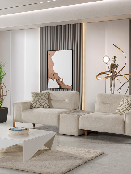 Luna Kanepe / Yataklı Koltuklar, yumuşak hatları ve dengeli formuyla yaşam alanlarında sıcak ve davetkâr bir atmosfer yaratır. Kanepe ve koltuk seçenekleriyle konutlar, villalar ve ofisler için ideal bir kullanım sunarken; yatak olabilme özelliği sayesinde misafir ağırlama ve çok amaçlı yaşam alanları için pratik bir çözüm sağlar. Zamansız tasarımı, farklı iç mekân stillerine kolayca uyum sağlar.