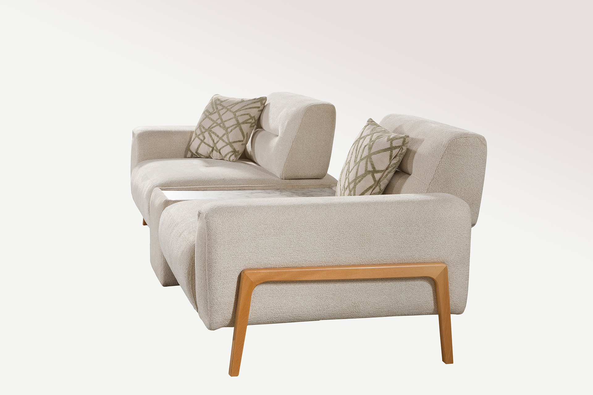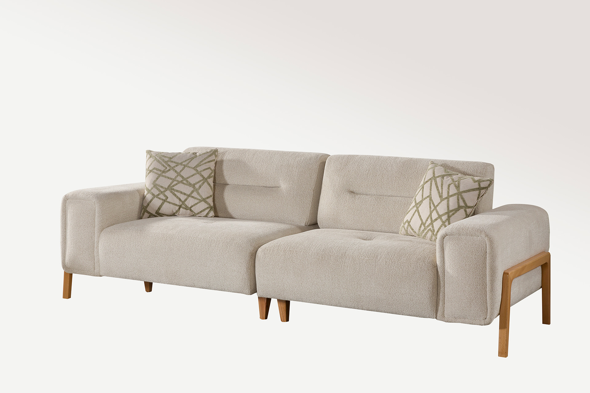Fırınlanmış masif ahşap iskeleti ve preslenmiş kontrplak oturum tabanı ile sağlam ve uzun ömürlü bir yapı sunan Luna, yüksek yoğunluklu sünger yapısı sayesinde konforunu uzun süre korur. Sırt minderlerinde kullanılan özel sünger kombinasyonu yumuşak ve destekleyici bir deneyim sunar. Farklı kumaş seçenekleriyle kişiselleştirilebilen Luna Kanepe / Yataklı Koltuklar, modern yaşam alanlarında hem gündüz hem gece konforunu zarif bir biçimde tamamlar.