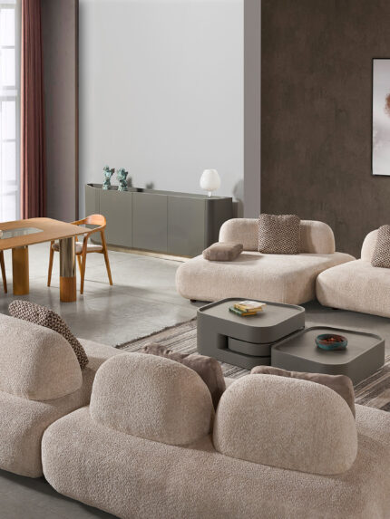 Polox Sehpa, güçlü geometrisi ve net hatlarıyla yaşam alanlarına modern ve karakterli bir ifade kazandırır. Dengeli oranlarla tasarlanan formu, mekânda düzenli ve bütünlüklü bir görünüm sunarken; fonksiyonel yüzeyi günlük kullanımda pratik bir alan sağlar. Zamansız tasarım dili sayesinde farklı oturma gruplarıyla uyum içinde kullanılarak yaşam alanlarının estetik ve tamamlayıcı bir parçası haline gelir.