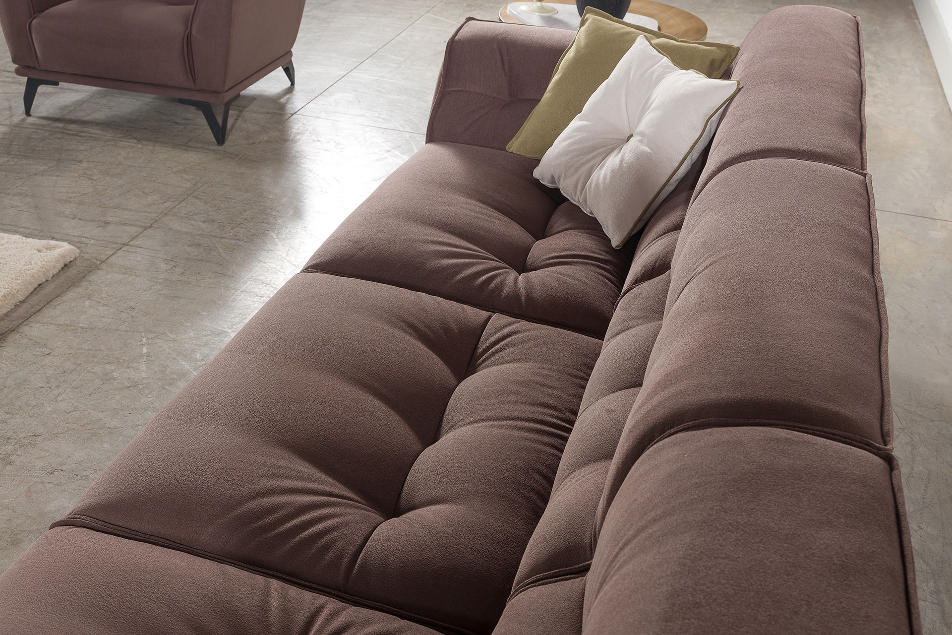 Sağlam yapısını fırınlanmış masif ahşap iskelet ve preslenmiş kontrplak oturum tabanından alan Ravello Köşe Takımı, uzun ömürlü kullanım için tasarlanmıştır. Yüksek yoğunluklu sünger yapısı konforu uzun süre korurken, sırt minderlerinde kullanılan özel sünger kombinasyonu yumuşak ve destekleyici bir oturum deneyimi sunar. Farklı kumaş seçenekleriyle kişiselleştirilebilen Ravello, modern yaşam alanları için konfor ve estetiği bir arada sunar.
