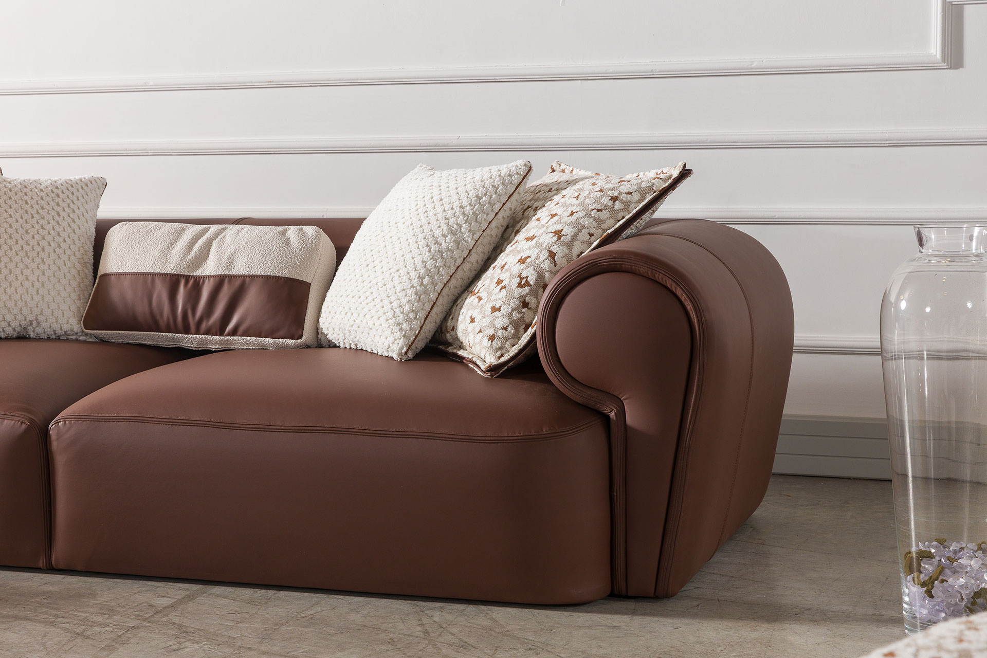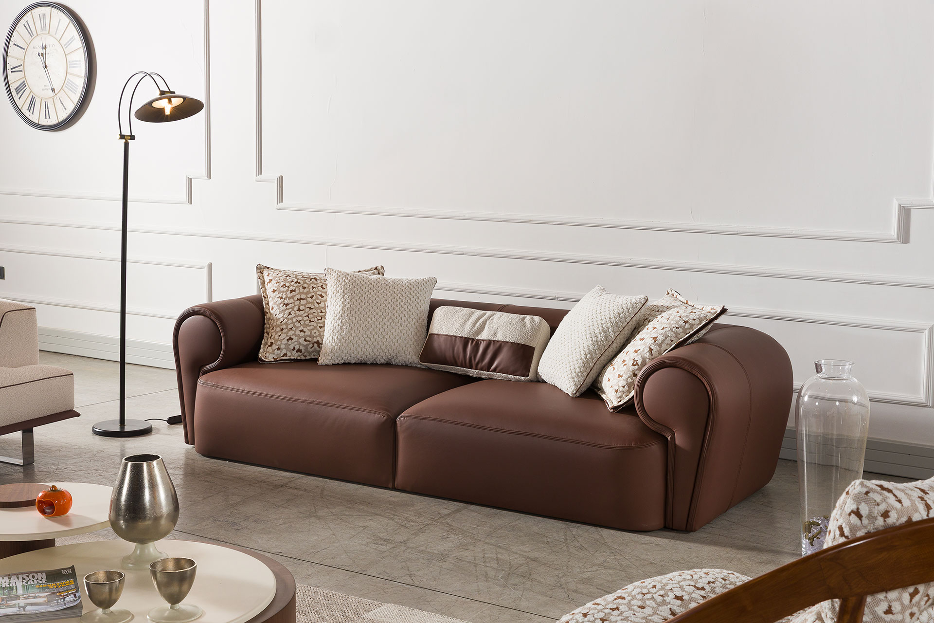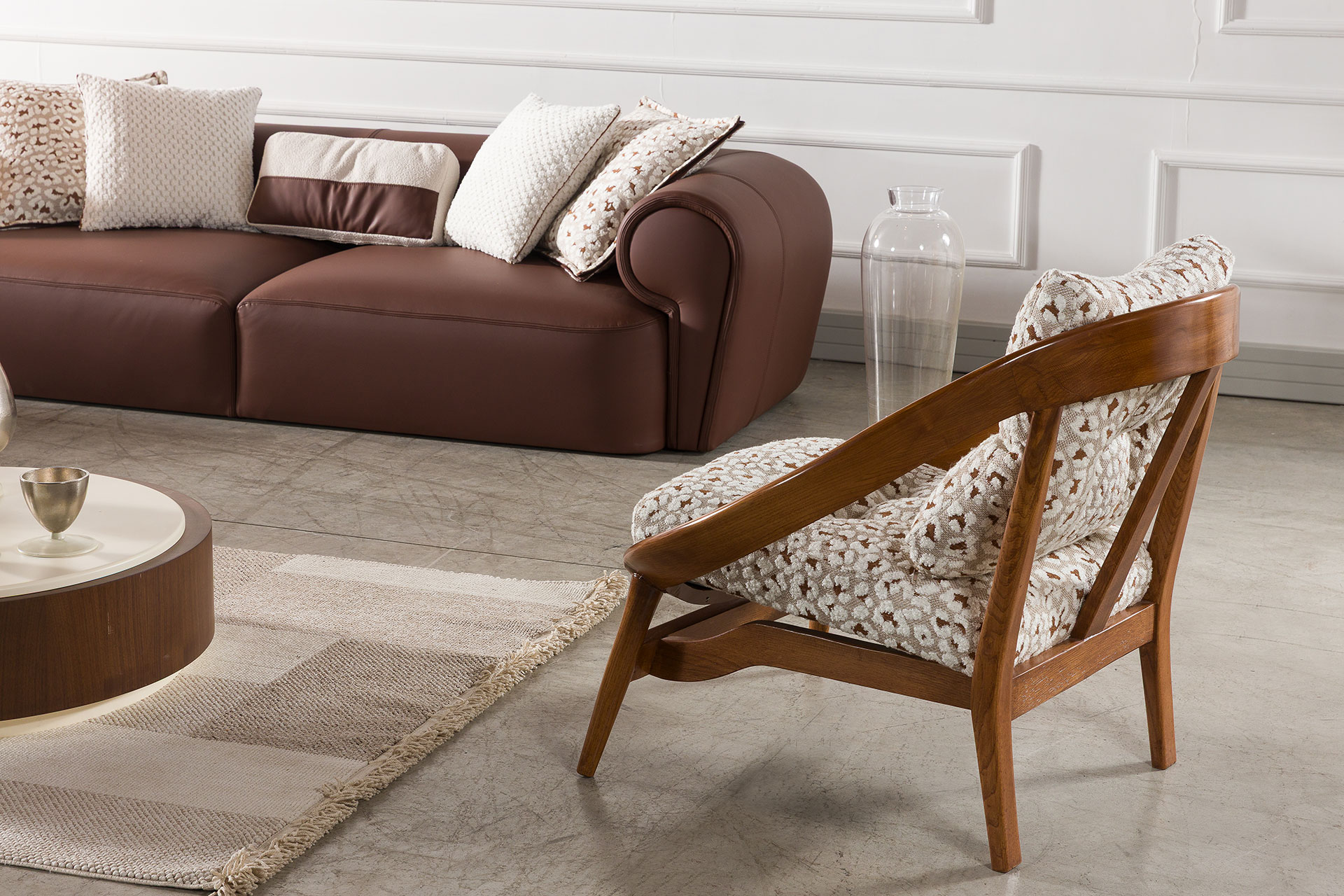 Vita İkili / Üçlü Takım, modern çizgileri ve net formlarıyla yaşam alanlarına çağdaş bir karakter kazandırır. Köşe koltuk, koltuk ve berjer alternatifleri sayesinde konutlar, villalar ve ofisler için esnek ve fonksiyonel bir kullanım sunar. Fırınlanmış masif ahşap iskeleti ve preslenmiş kontrplak oturum tabanı, ürüne sağlamlık ve uzun ömürlü kullanım avantajı kazandırırken; dengeli ölçüleriyle mekân içinde ferah ve düzenli bir yerleşim sağlar.