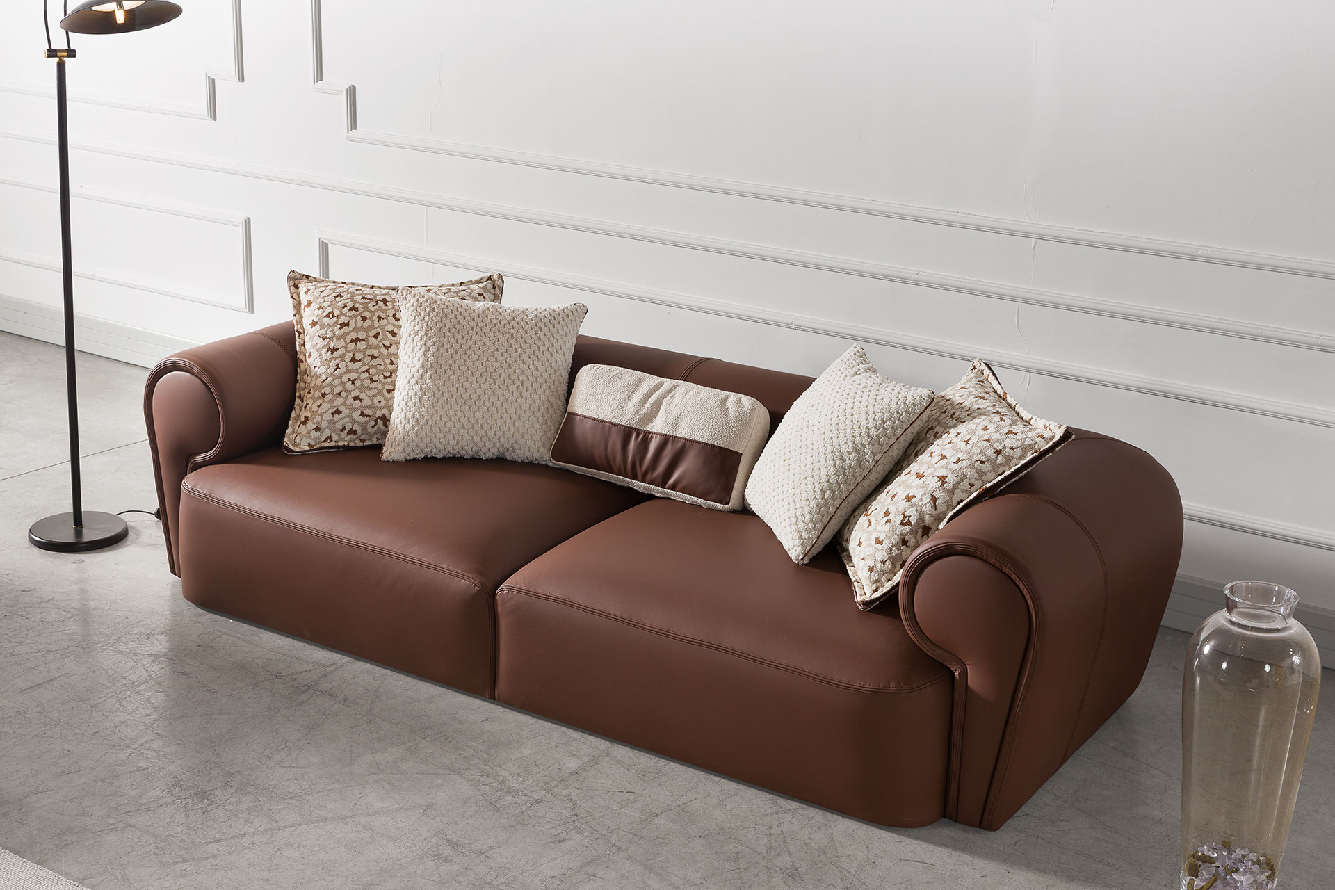 Oturumda kullanılan 35 HR sünger, yüksek taşıma kapasitesiyle konforu uzun süre korur ve form kaybı yaşatmaz. Lamineli elyaf, kuştüyü ve özel kesim D30–D32 sünger kombinasyonuna sahip sırt minderleri, yumuşak ve destekleyici bir oturum deneyimi sunar. Viskon, keten, pamuk, pamuk-akrilik ve şönil kumaş seçenekleriyle kişiselleştirilebilen Loft Takımı; 15 cm metal ayak detayıyla tasarıma hafif, modern ve endüstriyel bir görünüm kazandırır.